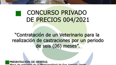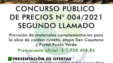 El Municipio de San Antonio llama a Concurso Públicos de Precios N°007/2021, que tiene por objeto el ofrecimiento en preadjudicación…