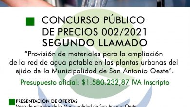 El Municipio de San Antonio llama a Concurso Públicos de Precios N°002/2021, que tiene por objeto la “Provisión de materiales…