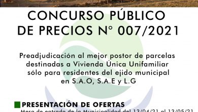 LLAMADO A CONCURSO PÚBLICO DE PRECIOS N° 007/2021 – PARCELAS PARA VIVIENDA ÚNICA UNIFAMILIAR