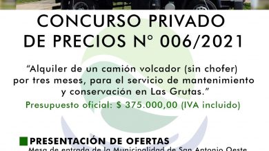 El Municipio San Antonio realiza el Concurso Privado de Precios N°006/2021, que tiene por objeto el “Alquiler de un camión…