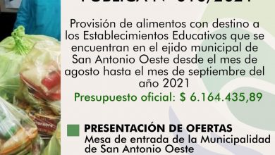 El Municipio San Antonio hace el Llamado a Licitación Pública N°010/2021, por la «Provisión de alimentos con destino a los…