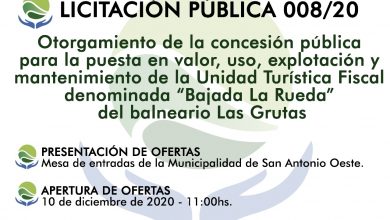 La Municipalidad de San Antonio Oeste realiza el llamado a Licitación Pública N°008/2020 para el otorgamiento de la concesión pública…
