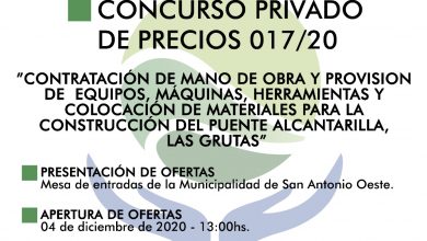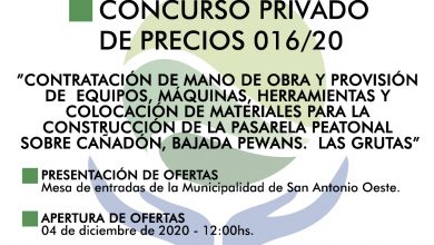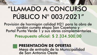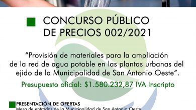 La Municipalidad de San Antonio Oeste realiza el llamado a concurso público de precios para la contratación de mano de…