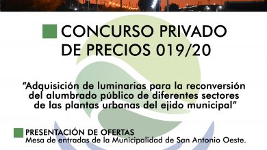 El Municipio de San Antonio llama a concurso privado de precios N°019/2020 que tiene por objeto la adquisición de luminarias…