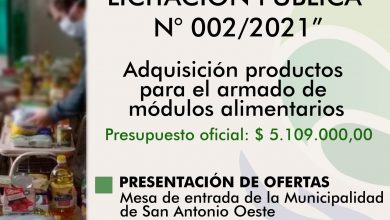 El Municipio de San Antonio realiza un llamado a Licitación Pública N°002/2021, que tiene por objeto la “Adquisición productos para…