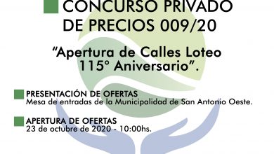 La Municipalidad de San Antonio Oeste realiza un llamado a Concurso Privado de Precios N°9/2020 correspondiente a la «Apertura de…